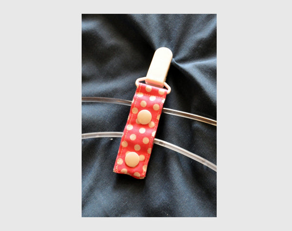 Simply snap the Cord Clip's fabric length around whatever tubing you want to wrangle, and then clip the easy-open/secure-close clip to clothing, backpack, wheelchair, or any handy surface.