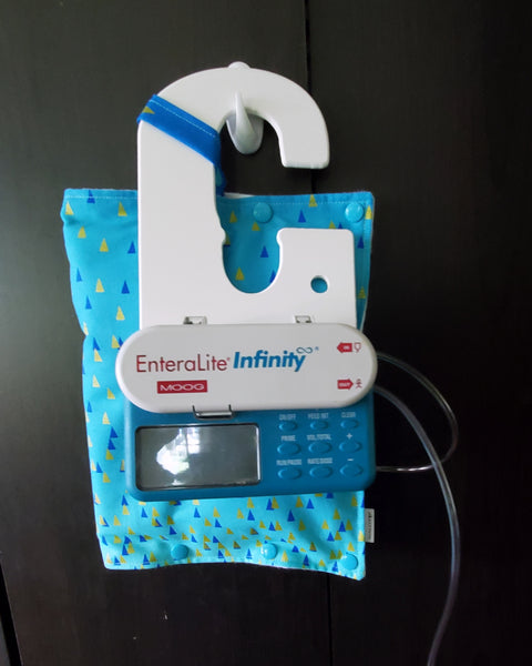 Best of all, we made our Feeding Pump Bag Covers versatile to fit multiple brands of feeding pump bags. Most other insulated covers are intended for just one brand of feeding pump - but that doesn't work for MY family. At home, we use an Infinity pump, but during hospital stays, we use the hospital's Kangaroo pumps. So, we designed our Covers to fit both.